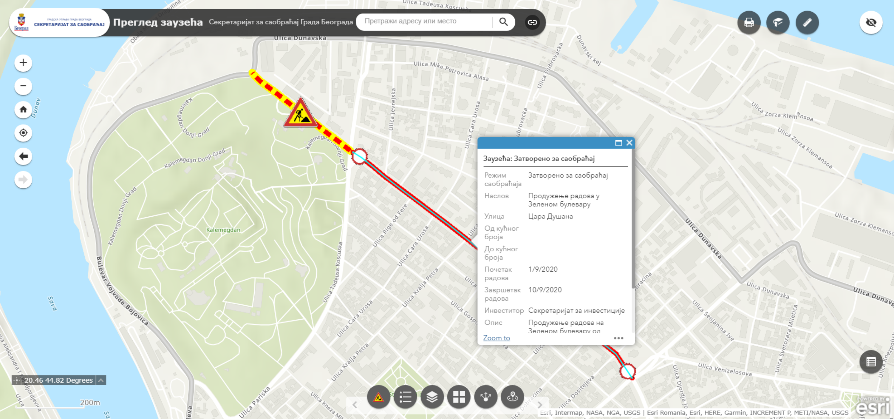 ГИС мапа коју је Секретаријат за саобраћај понудио грађанима на коришћење, тренутно садржи податке о изменама режима саобраћаја на читавој територији града. Корисници кликом миша могу добити додатне информације или вршити промену у начину приказивања постојећих података кроз једноставне алате који се налазе на карти.