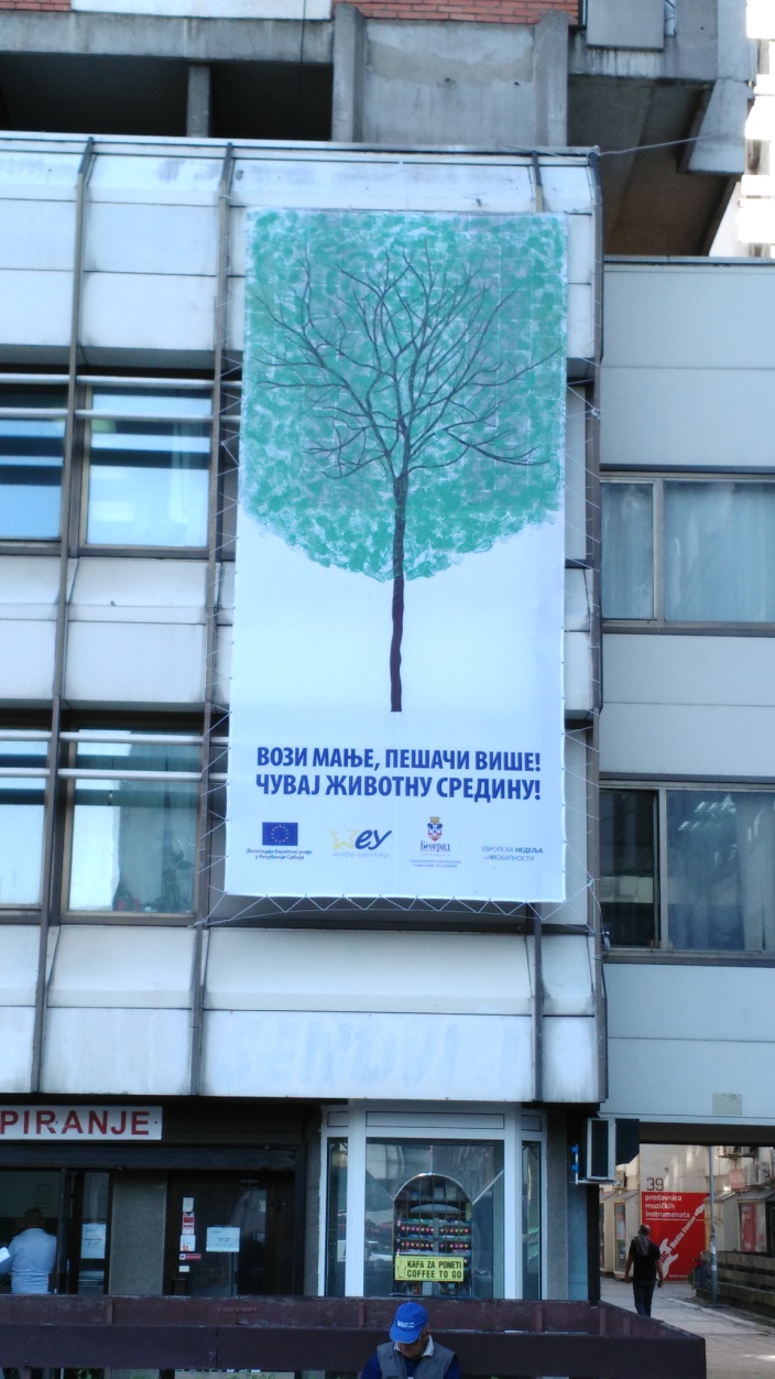Такође, врши се промоција постављеног платна на зграду Секретаријата за саобраћај, у оквиру акције „Зелени пешачки прелази“ која је организована у недељу, 18.09.2016. године у Мишарској улици.