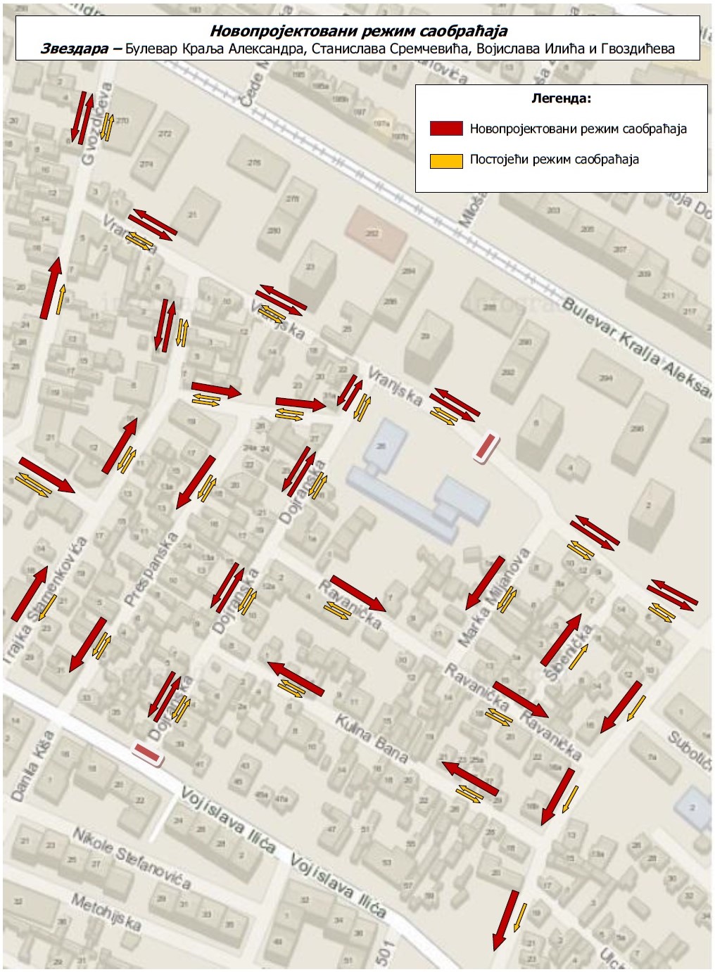 У циљу побољшања услова функционисања саобраћаја на уличној мрежи града Београда, Секретаријат за саобраћај је у 2015. години покренуо реализацију пројекта Редефинисања режима саобраћаја на територији ГО Звездара оивичене улицама Булевар Краља Александра, Станислава Сремчевића, Војислава Илића и Гвоздићева.