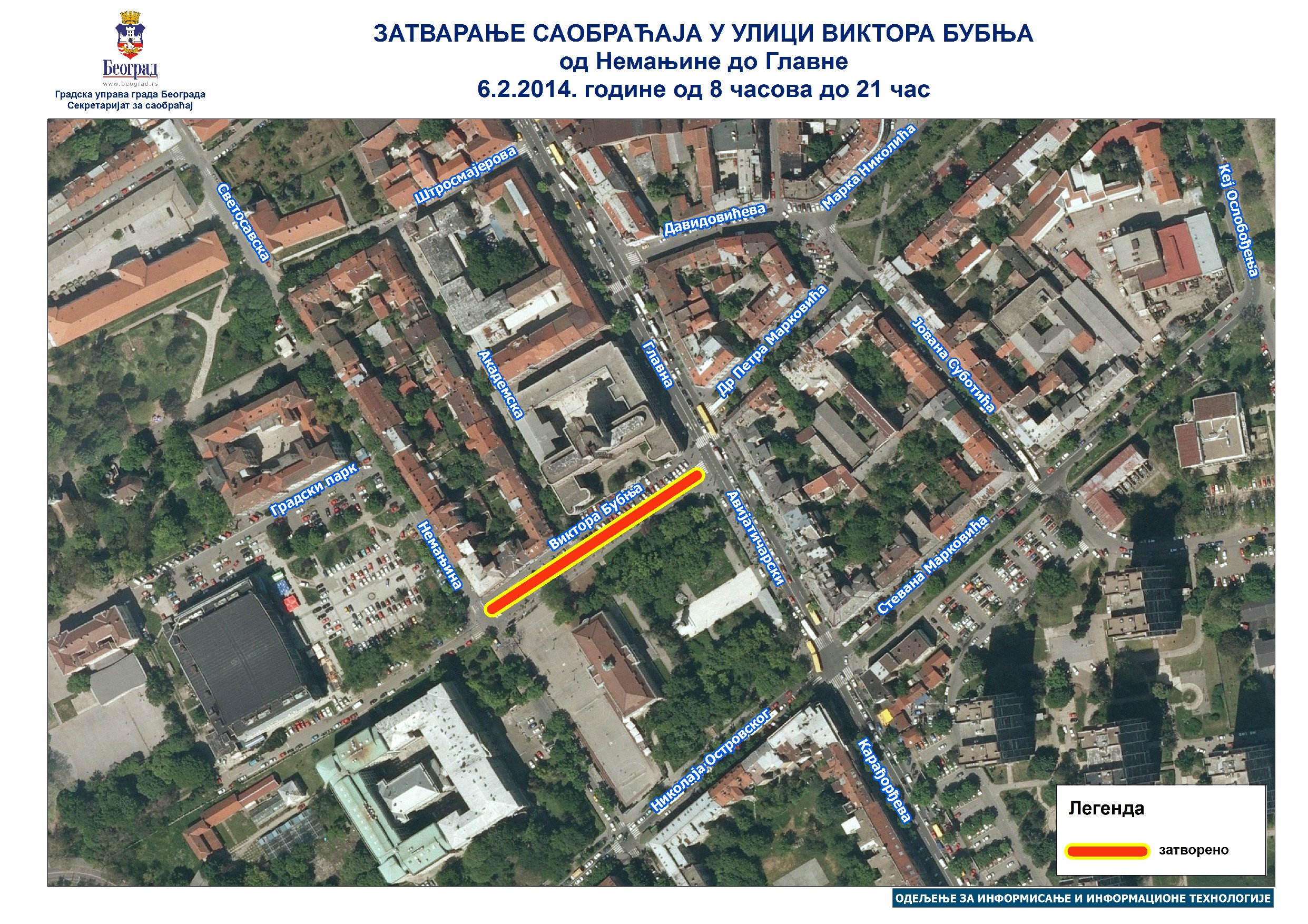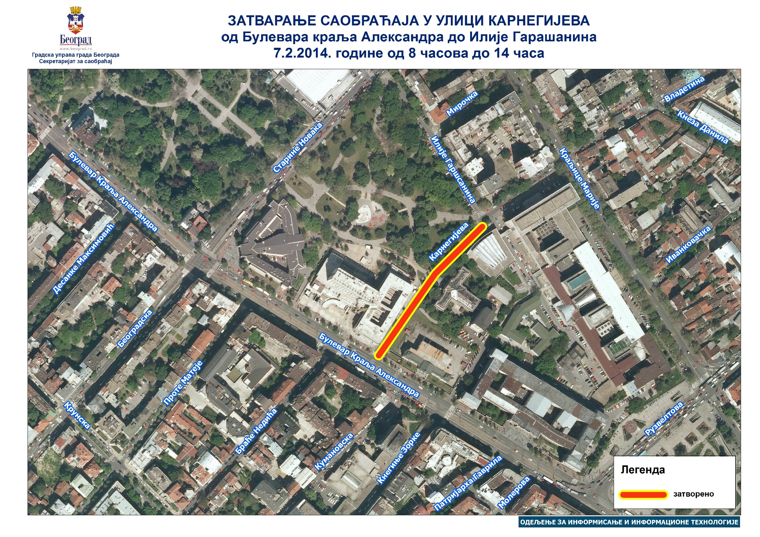 Због снимања филма, дана 07. фебруара 2014. године у временском периоиду од 08.00 до 14.00 ч. за саобраћај ће бити затворена Карнеџијева улица, од Илије Гарашанина до Булевара краља Александра.У периоду од 29.01.2014. године до 03.02.2014. године трајаће продужењe извођења радова на санацији дефекта на канализационој мрежи на раскрсници улица Бранка Миљковића и Ђоке Павићевића, које изводи ЈКП „Београдски водовод и канализација“.