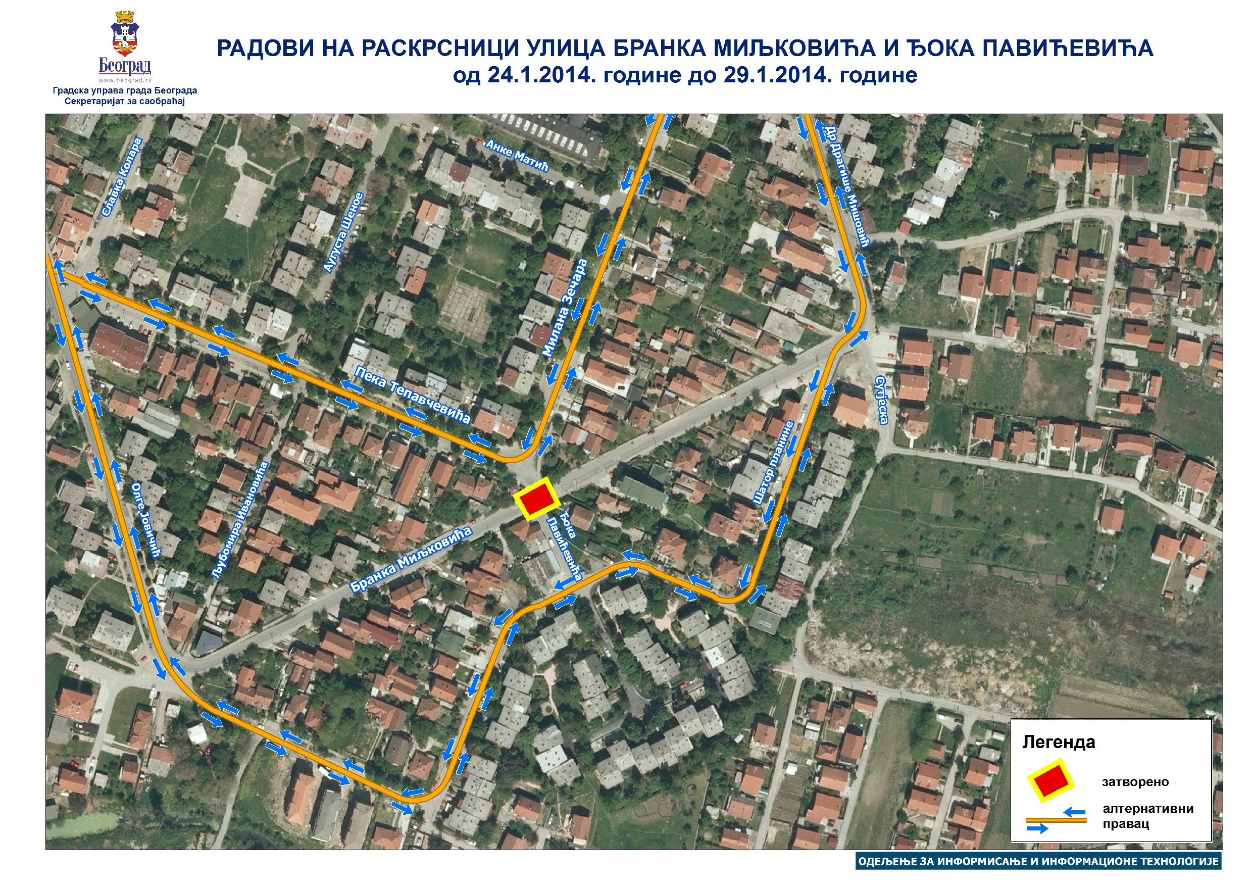 У периоду од 24.01.2014. године до 29.01.2014. године ЈКП „Београдски водовод и канализација“ ће изводити радове на санацији дефекта на канализационој мрежи на раскрсници улица Бранка Миљковића и Ђоке Павићевића.Током извођења радова мења се режим рада линија јавног превоза: Опширније