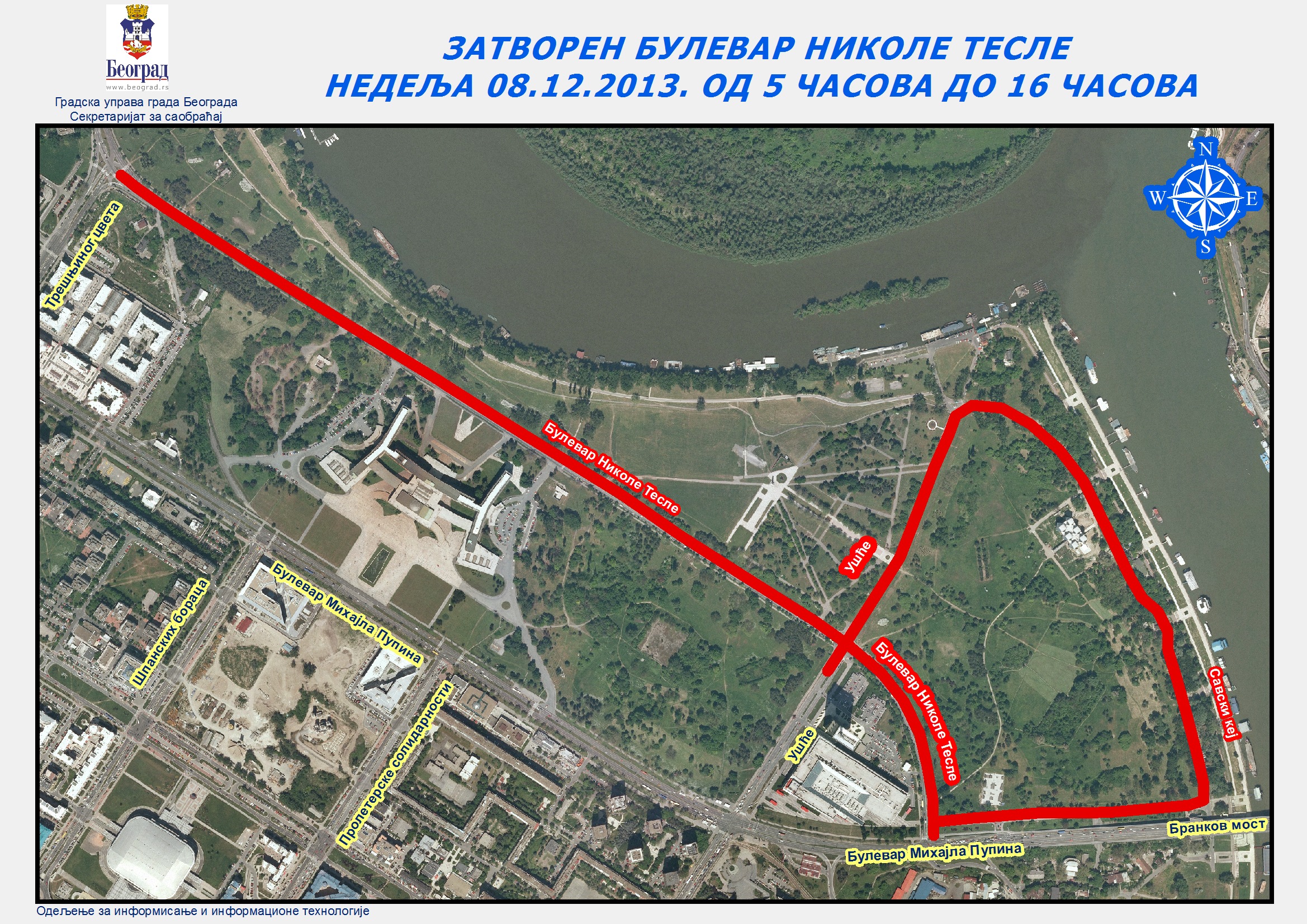 Због одржавања „20. Европског првенства у кросу у недељу 08.12.2013. од 05 часова до 16 часова за саобраћај је затворен део Булевара Николе Тесле од раскрснице Булевар николе Тесле – Булевар Михајла Пупина до Улице Трешњиног цвета и улица ушће од куле „Ушће“ до Музеја савремена уметности.У наведеном периоду доћи ће до следећих измена у режиму рада возила јавног градског превоза.