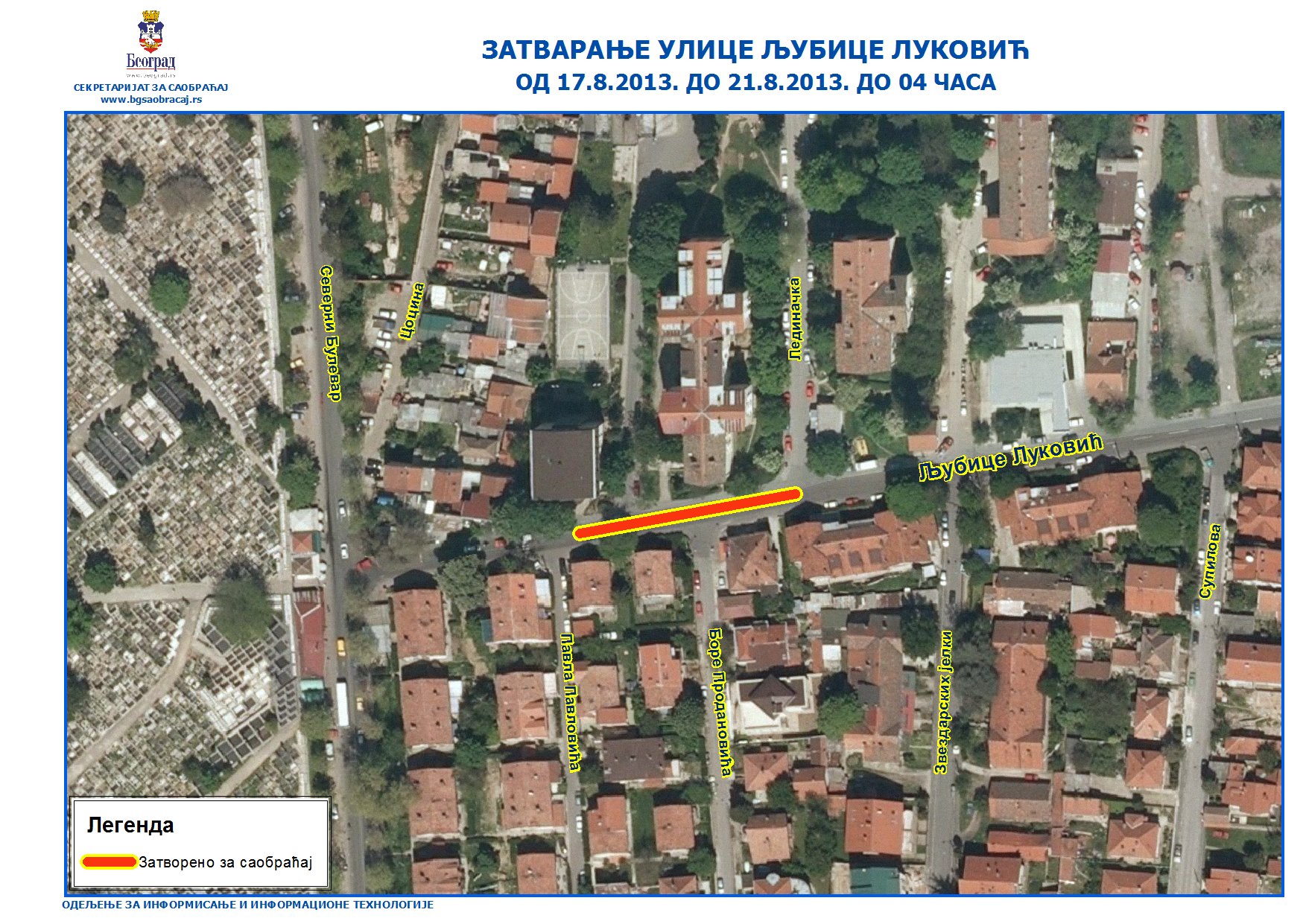 Tоком извођења радова на водоводној мрежи, у Улици Љубице Луковић испред студентског дома "Патрис Лумумба" у периоду од 17.08.2013. године до 04:00 часова 21.08.2013. године ће бити измењен режим рада линија јавног превоза на следећи начин: