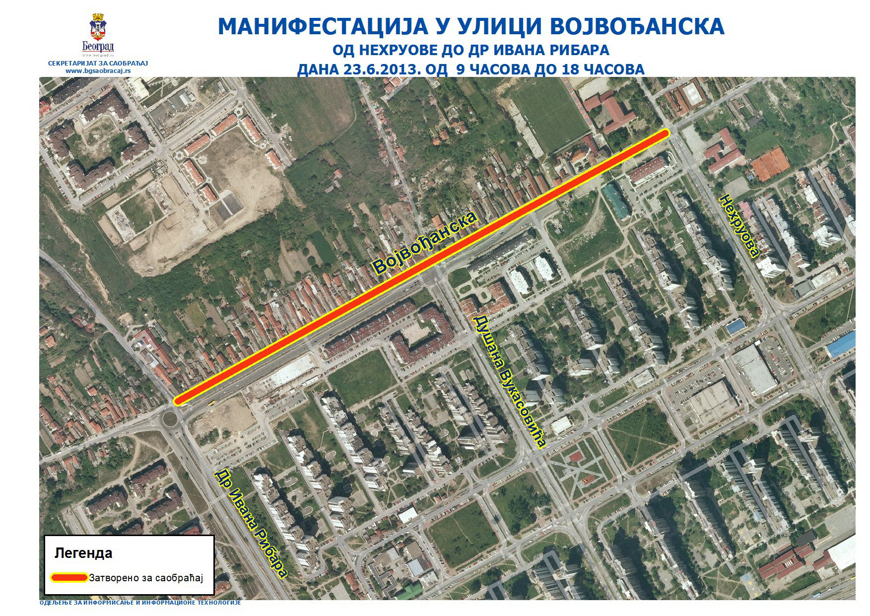 Због обележавања славе на Бежанијској коси у недељу 23.06.2013. од 09 часова до 18 часова за саобраћај ће бити затворена Војвођанска улица