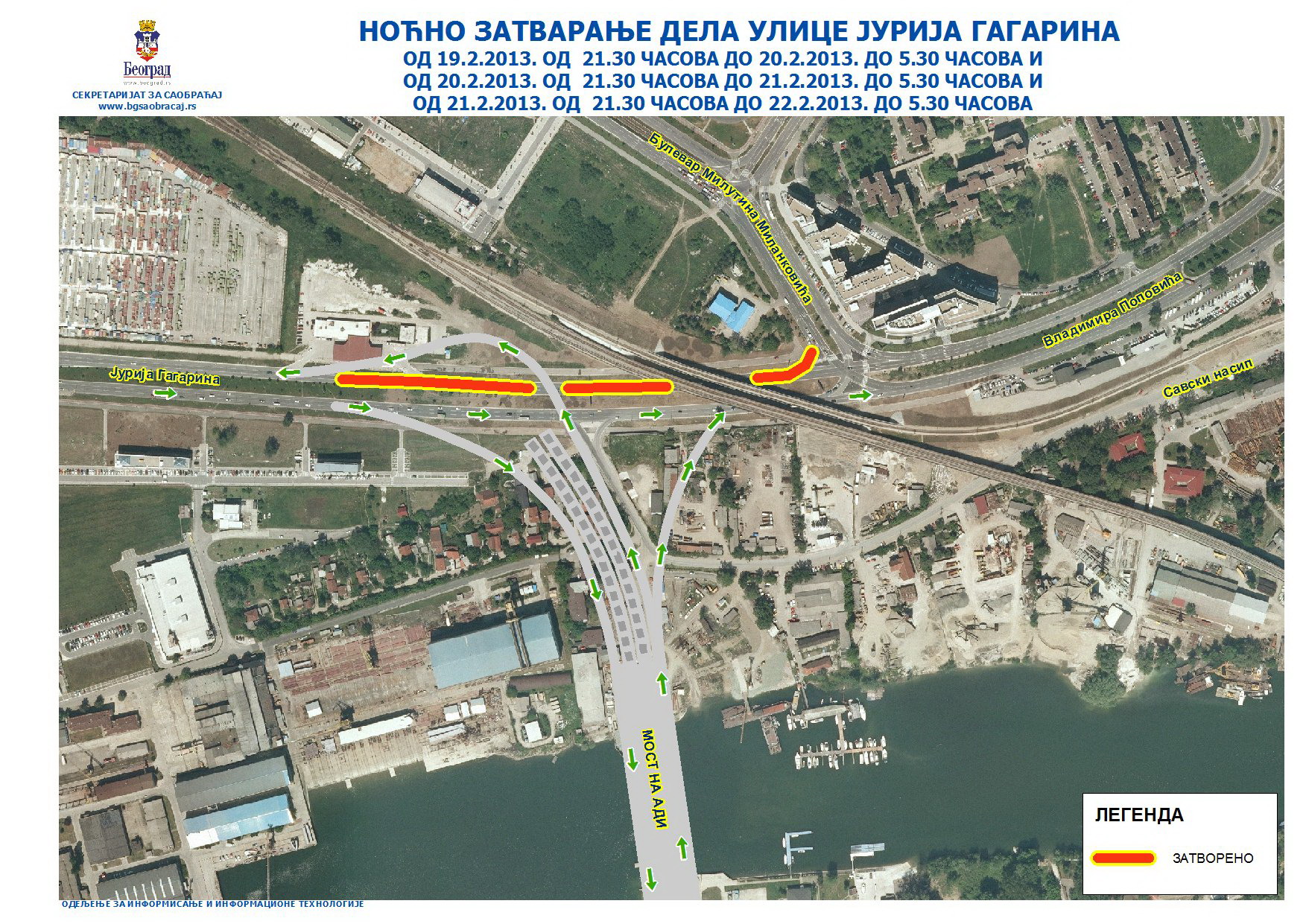 ЈП “Путеви Србије” обавештава да ће се дана 14/15.02.2013.г. (четвртак/петак) у периоду од 00:00h до 02:00h на мосту Газела изводити радови на постављању државних обележја- заставица Републике Србије, док ће се дана 18/19.02.2013.г. (понедељак/уторак) обавити радови на скидању заставица.