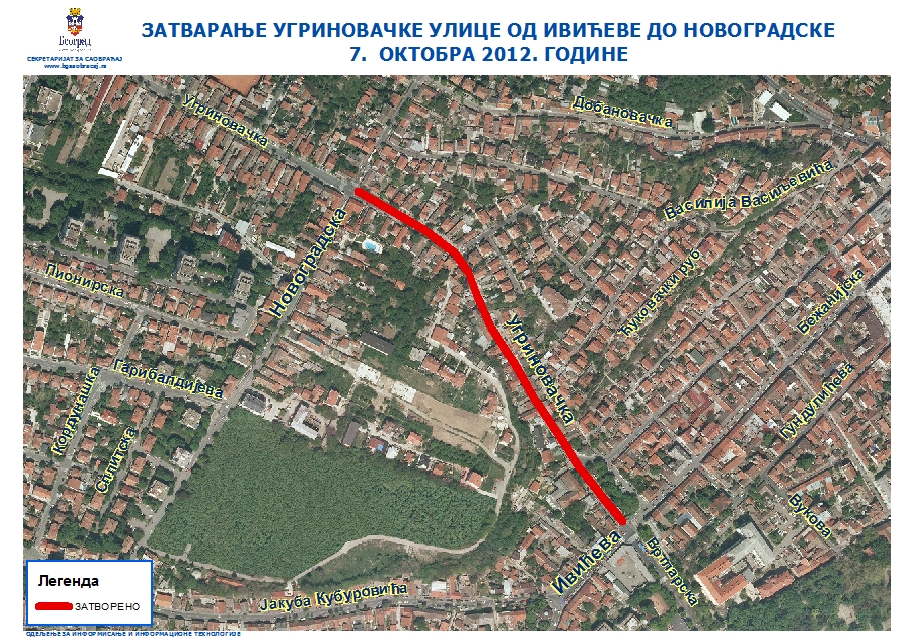 Током извођења радова у оквиру редовног одржавања биће затворена Угриновачка улица, на делу од Ивићеве до Новоградске улице, у недељу 7.10.2012. године од 7 до 22 часа.