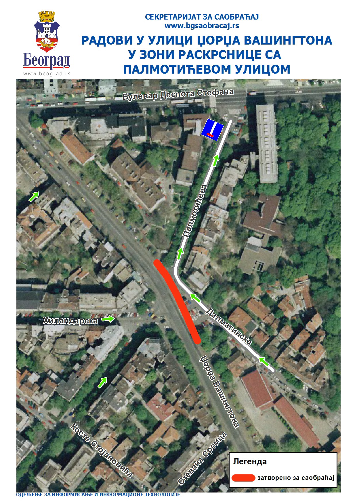 • трамваји са линије број 2 саобраћаће на унутрашњем кругу трасом: терминус „Пристаниште“ – Карађорђева - Париска – Тадеуша Кошћушка - Цара Душана – Џорџа Вашингтона – 27. марта - Краљице Марије – Рузвелтова – Булевар краља Александра – Београдска - Трг Славија – Немањина – Савски трг – Карађорђева – терминус „Пристаниште“,