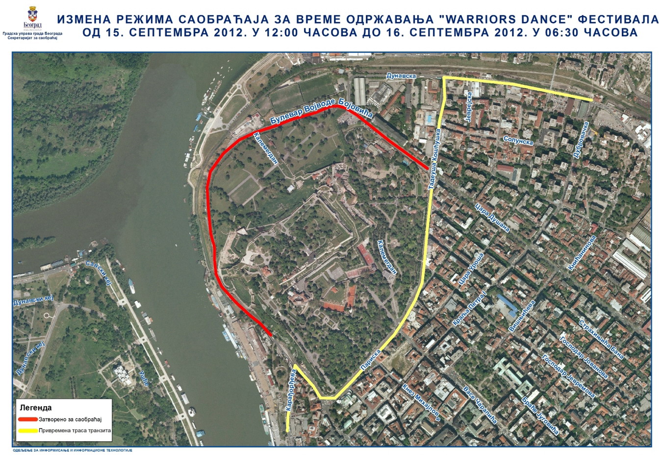 Током одржавања ове манифестације трамвајске линије број 5 и 10 ће на делу од раскрснице улица Цара Душана-Тадеуша Кошћушка саобраћати следећом трасом: Тадеуша Кошћушка –