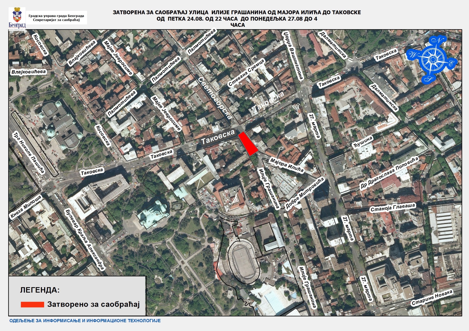 Током извођења радова на редовном одржавању коловоза у Дечанској улици, на делу од Нушићеве до Македонске улице, од петка 24. 08. од 22:00 часа до понедељка 27. 08. у 04:00 часа, за саобраћај ће по фазама бити затварана по једна половина коловоза, док ће се саобраћај одвијати двосмерно на другој половини коловоза. У свакој од фаза радова биће омогућен улазак и излазак из „Теразијског тунела“