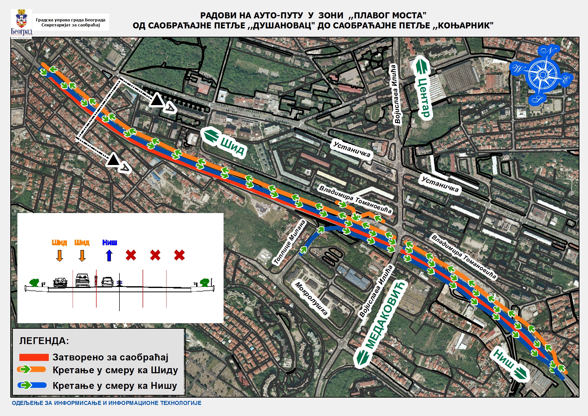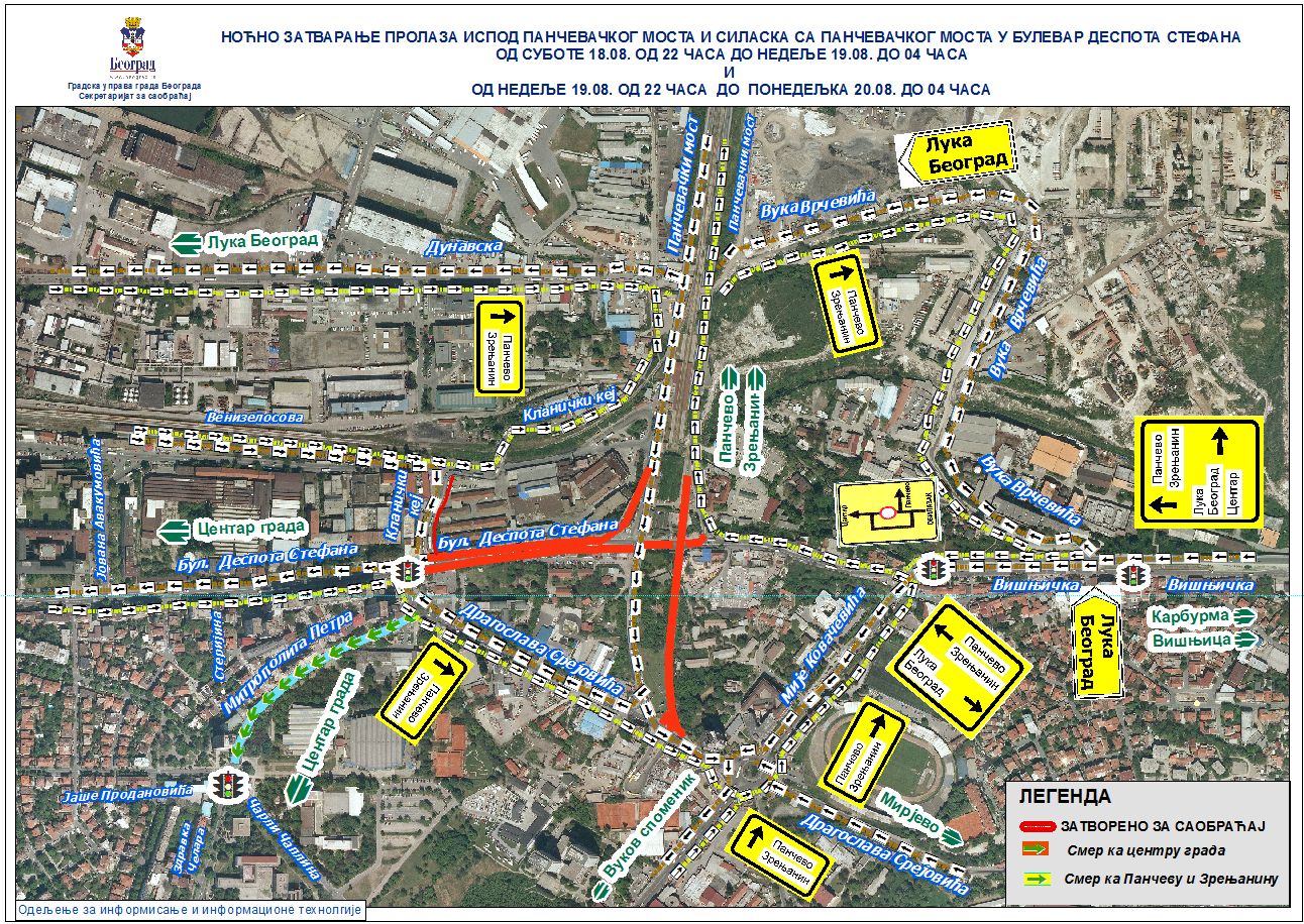 Сва возила која долазе Панчевачким мостом из смера Зрењанина и Панчева у овом периоду усмеравају се ка улици Драгослава Срејовића одакле ће моћи у десном скретању да наставе ка центру града или у левом