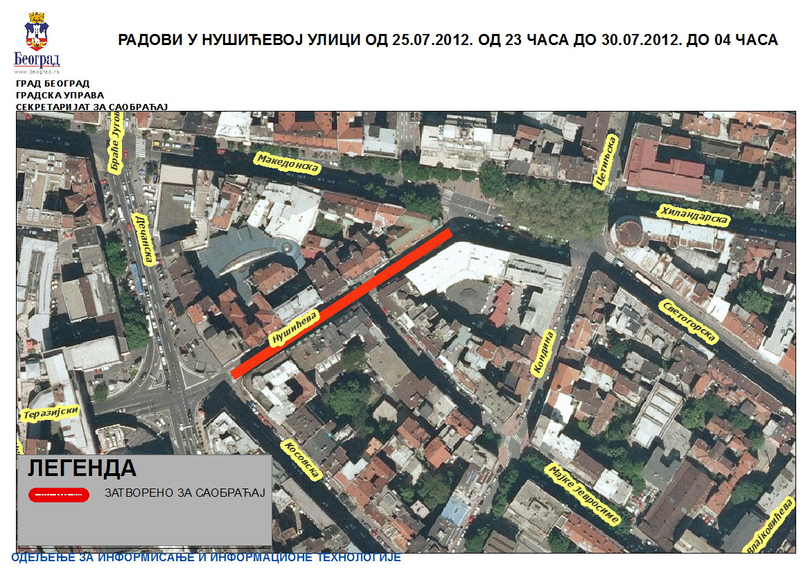 Због ових радова биће делимично измењена траса линија јавног градског превоза број 65 и 77, које ће у смеру ка Звездари користити измењену трасу следећим улицама: „Теразијски тунел“ – Дечанска – Браће Југовића - Булевар деспота Стефана - Џорџа Вашингтона - 27. марта и даље редовном трасом. У смеру ка Новом Београду наведене линије јавног градског превоза неће мењати трасу.