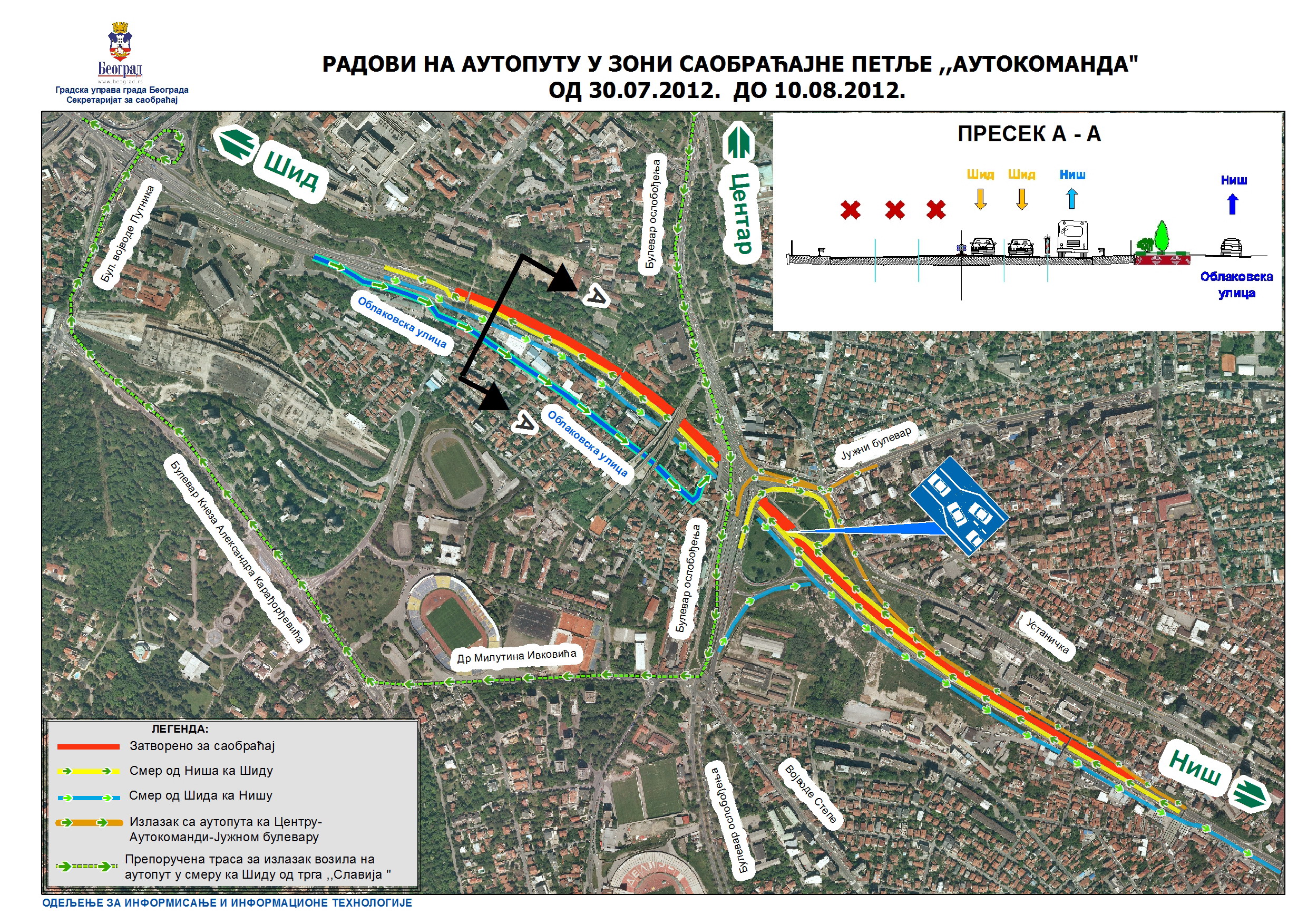 ЈП „Путеви Србије“, као инвеститор радова на рехабилитацији аутопута Е-75 на проласку кроз Београд, обавештава да се 27.07.2012.г. (петак) од 10.00h, након завршених радова, у саобраћај пушта коловозна трака у смеру ка Нишу, на делу од петље „Аутокоманда“ до петље „Душановац“.