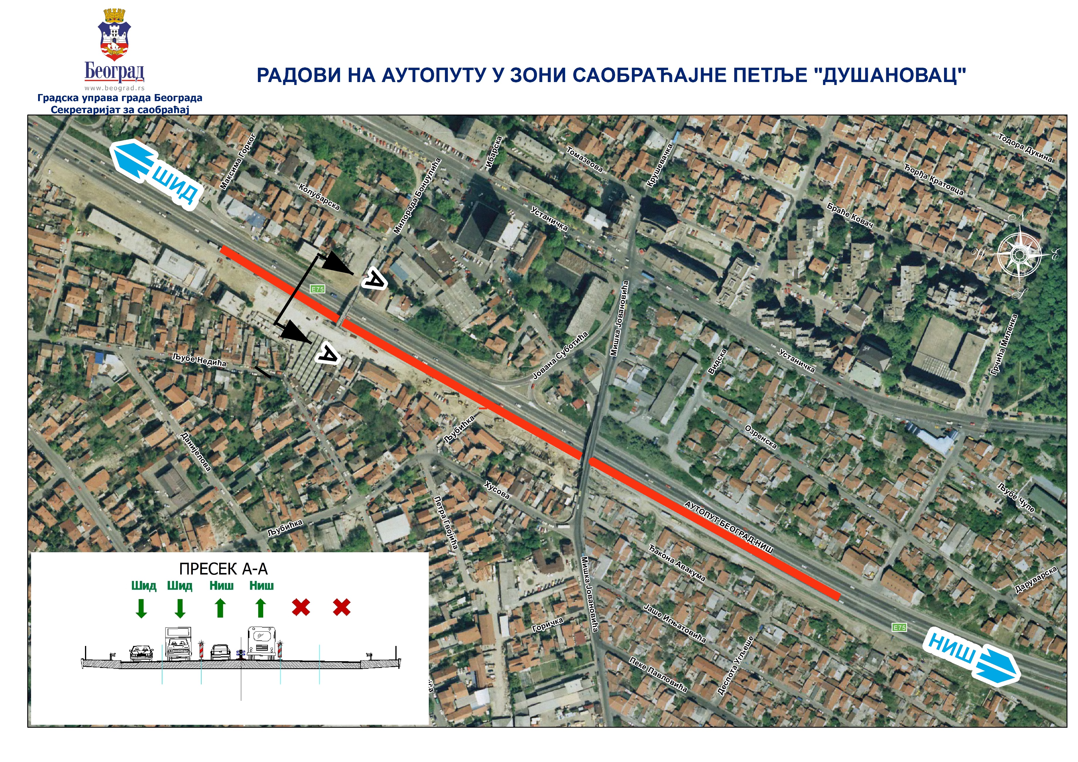 ЈП „Путеви Србије“ као инвеститор радова на рехабилитацији аутопута Е-75 на проласку кроз Београд Вас обавештава да ће 11.06.2012.г. од 16.00 часова због извођења радова у оквиру фазе “1” која подразумева извођење радова на замени кишне канализације за саобраћај бити затворене возна и зауставна трака аутопута Е-75 на потезу од петље “Аутокоманда” у дужини од 1200м у смеру ка Нишу.
