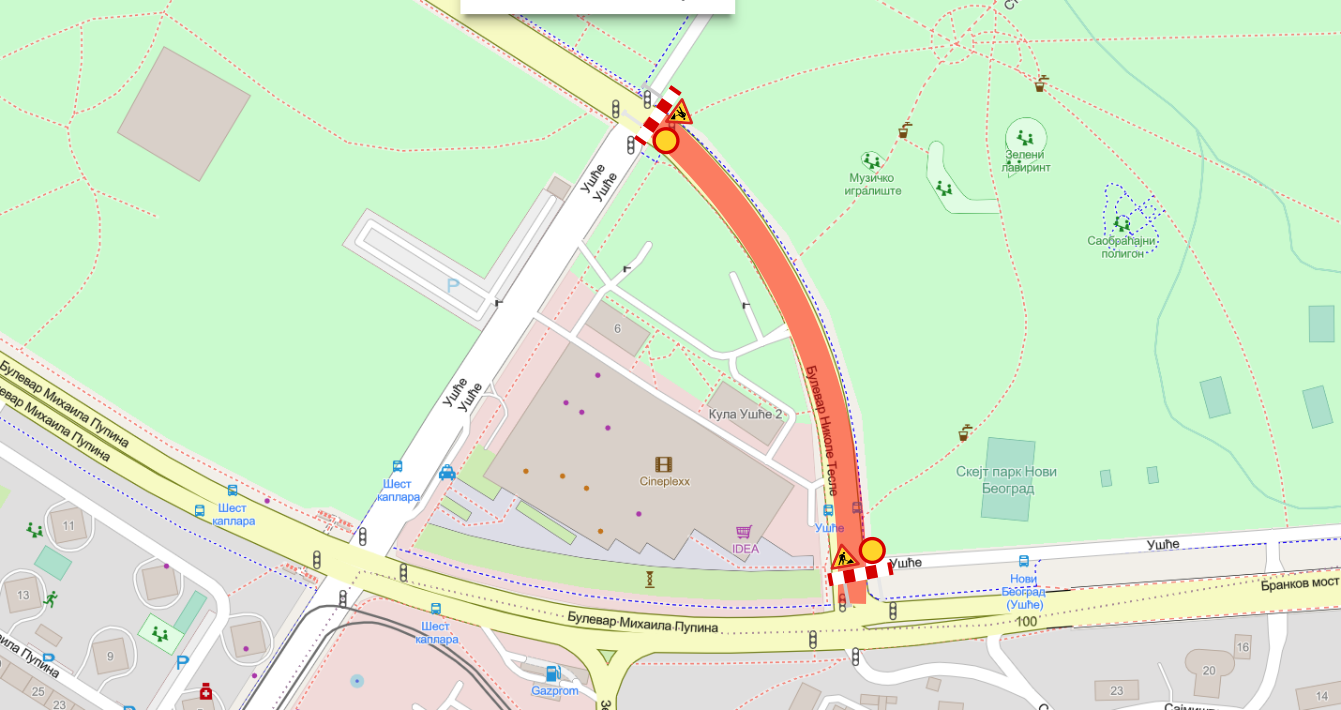 Током радова на редовном одржавању Булевара Николе Тесле за саобраћај ће бити затворене