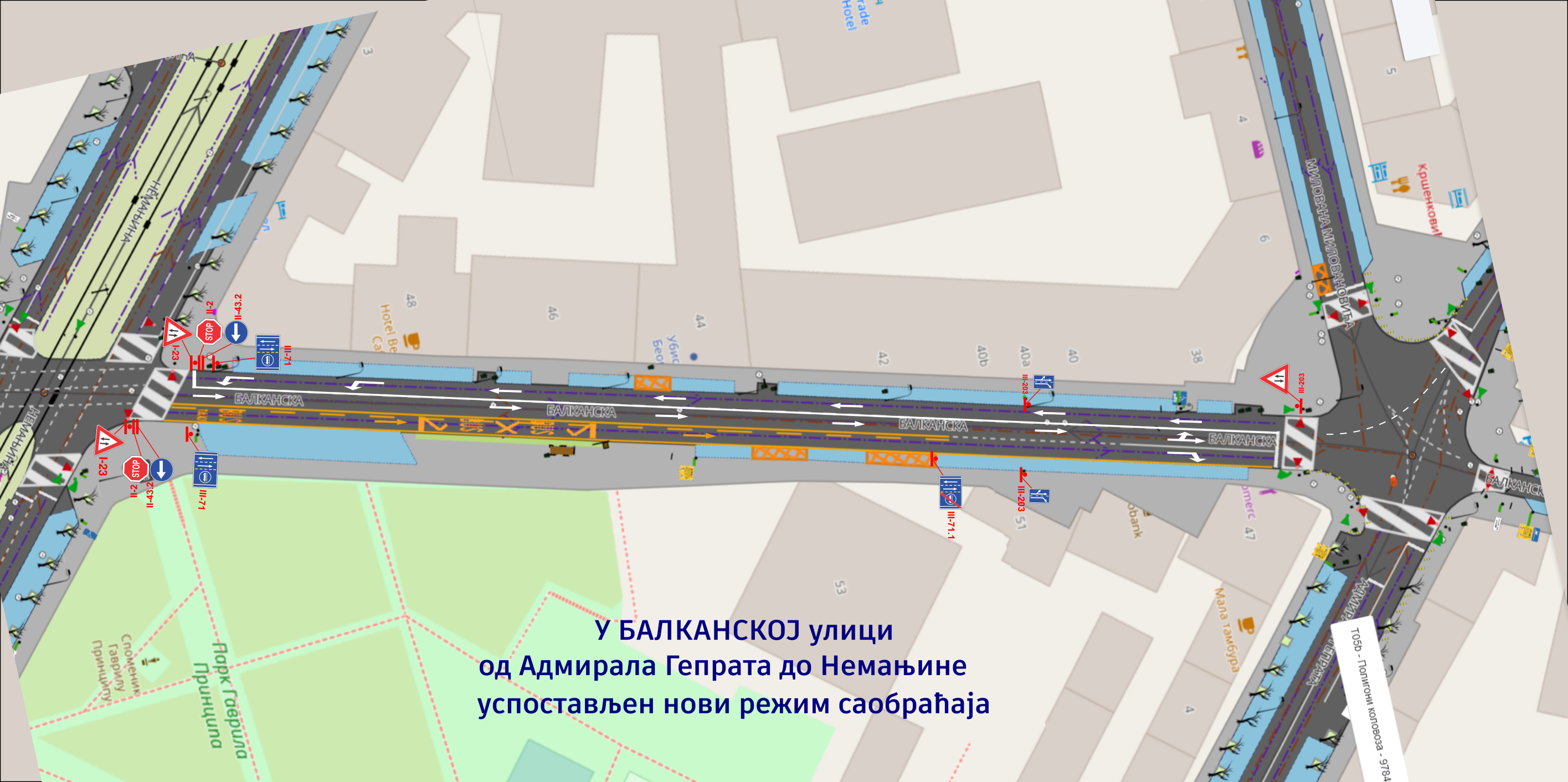 Секретаријат за саобраћај обавештава грађенe да је у Балканској улици на делу од раскрснице са Немањином улицом до раскрснице са улицама Гаврила Принципа и Адмирала Гепрата дошло до укидања постојећег једносмерног режима и успостављања новог двосмерног режима саобраћаја.
