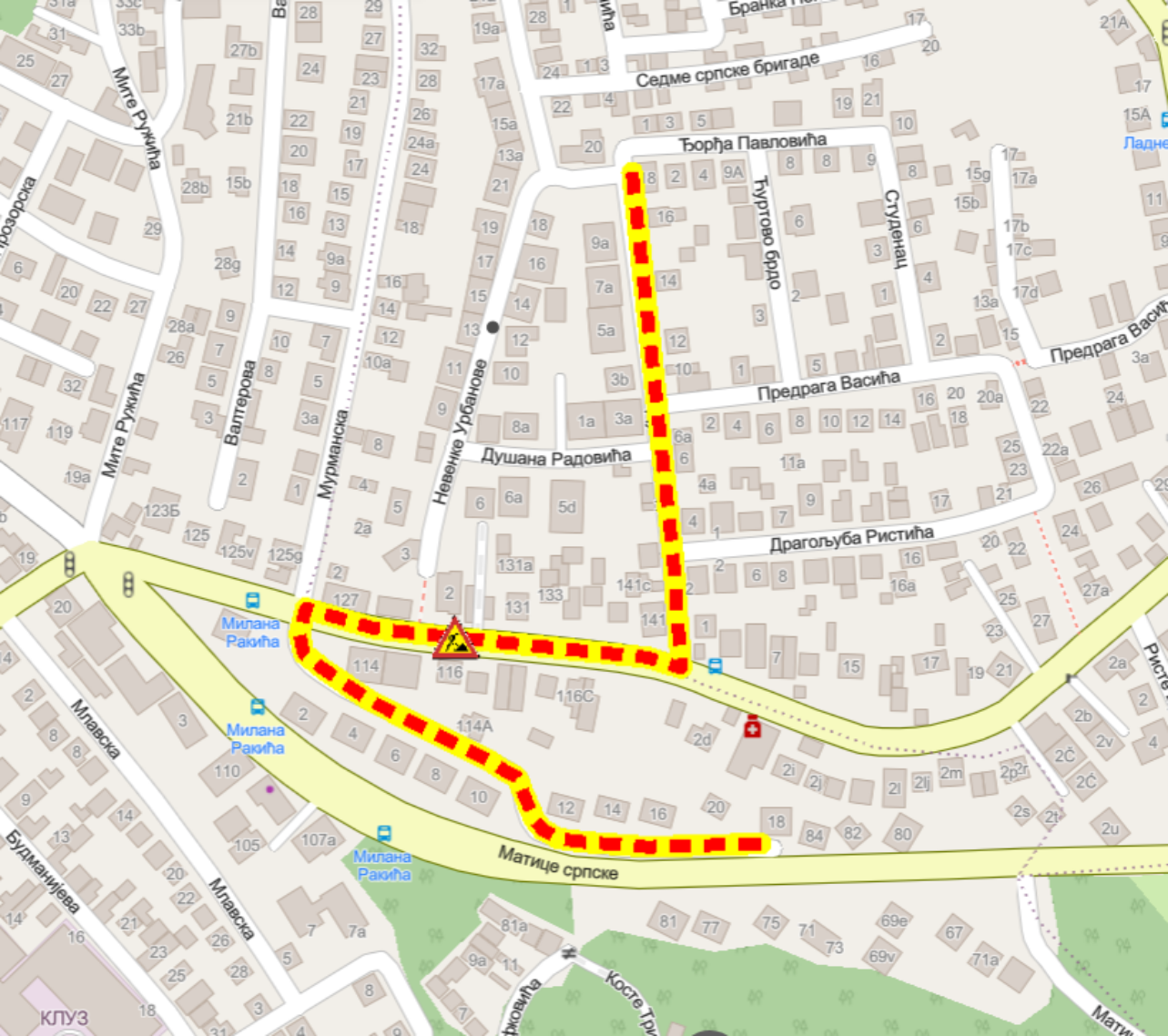 Током радова на изградњи топловодног прикљука које изводи ЈКП "Београдске електране", у периоду од 6.августа до 24. септембра 2021. године доћи ће до измене у режиму, затварања за саобраћаја, заузећа и раскопавања коловоза и тротоара у улицама: Милана Ракића, Душана Радовића и Киселе воде, по фазама.