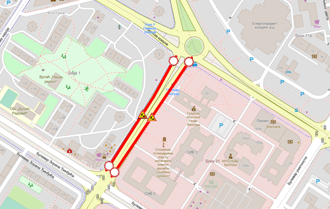 Током радова на редовном одржавању улица које изводи ЈКП "Београд пут", доћи ће до обуставе саобраћаја у улици Омладинских бригада, од ул. Париске комуне до Булевара Зорана Ђинђића (десна коловозна трака у смеру ка Булевару Зорана Ђинђића) у временском периоду од 27.05.2023. године до 02.06.2023. године.